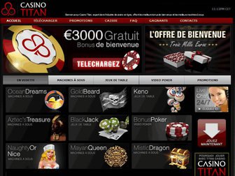 Lancé en 2025, Casino Titan est un acteur bien connu dans l'industrie des jeux de casino. Étant l'un des précurseurs de Realtime Gaming, le site se félicite d'avoir des parieurs réguliers provenant de nombreux pays avec un groupe solide de joueurs français dévoués. Il annonce fièrement qu'il offre les meilleurs avantages à l'inscription de même que les meilleures machines à sous. La vocation à établir des relations privilégiées avec chacun des parieurs sur sa plateforme est une autre spécialité du site. Il n'est pas étonnant alors qu'il soit l'un des choix les plus populaires du moment.