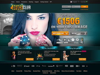 En matière d'établissements en ligne, le casino Deuce Club est suffisamment riche. Il dispose d'une grande variété d'excellents jeux, des promotions régulières et d'un logiciel fiable. Ce logiciel qui n'est autre que celui de Gamescale, fournit plusieurs dizaines de jeux à l'établissement dont chacun peut être prévisualisé avant même la création d'un compte. Le casino Deuce Club commence à répondre aux attentes de ses clients avant même qu'ils ne deviennent ses membres et fait un honnête effort pour cultiver de bonnes relations avec ses joueurs. Il est facilement accessible, contient une plus grande diversité d'options que la plupart des casinos en ligne et garantit à tous ses utilisateurs qu'ils passeront d'excellents moments. Les bonus du casino Deuce Club font également partie des plus généreux, étant donné que le bonus de bienvenue à lui seul est une correspondance de 150 % sur le premier dépôt à hauteur de 1 500 €.